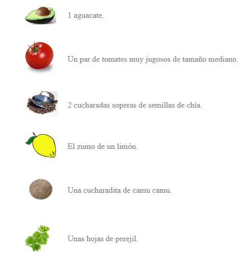 Se pelan los 2 tomates y se pasan por el brazo junto con unas hojas de perejil. El jugo obtenido lo mezclamos con 2 cucharadas de semillas de chía.
