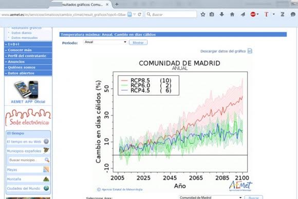 La desertización de la Península Ibérica es un hecho. En los datos del Instituto Metereológico Español se predice, durante este siglo, una subida de temperatura muy grande. Por ejemplo, en la Comunidad de Madrid, se ha predicho una subida de las temperaturas de hasta 7ºC y una extensión de la duración de las temporadas de calor extremo así como un descenso en los niveles pluviométricos.