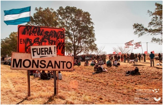 “Durante casi 3 años los habitantes del pequeño poblado de Malvinas Argentinas (en el departamento de Colon, provincia de Córdoba) se manifestaron en contra de la multinacional, con el fin de bloquear la construcción de una nueva planta de productos transgénicos.”