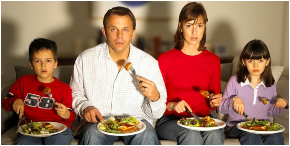 El televisor es la peor compañía cuando comemos, por la simple razón de que vamos a ser “bombardeados” por anuncios de comida chatarra, que inducen a nuestro cerebro a querer más. La mejor idea es sin dudas prender la TV cuando estemos satisfechos y negarnos conscientemente a comer delante de la “caja boba”.