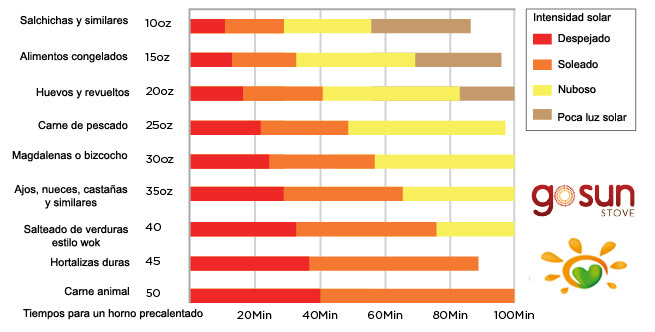 Tiempos de cocción Vs. intensidad solar:
