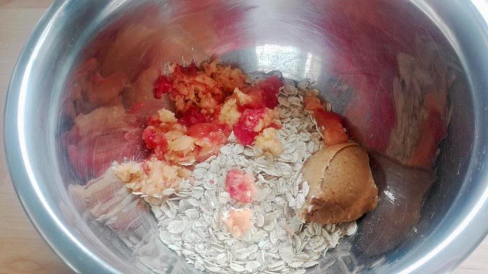 En este caso las mezclamos con mantequilla de cacahuete. Porque a mi parecer la fruta y la mantequilla de cacahuete hacen una pareja espectacular.
