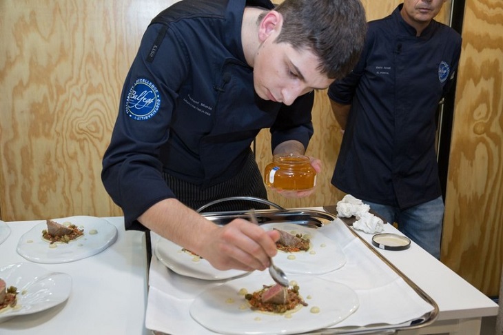 Rafel Muria, Chef de artMuria y sexta generación de la familia, ha asistido al certamen en nombre de la compañía después de haber sido galardonado recientemente con el Primer Premio del II Concurso de Cocina Profesional ‘Chef Balfegó’. Rafel Muria, conocido en el mundo de la alta cocina como el ‘chef de la miel’ y Chef del Restaurante Quatre Molins de Cornudella de Montsant (Tarragona), ha sido galardonado por sus platos “Lomo de atún rojo Balfegó, tartar de tomate con miel de romero artMuria y crema de berenjena ahumada” y “Royal de atún rojo Balfegó con su salsa y compota de pera”.