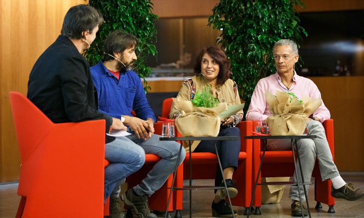 El acto contó con una pequeña mesa redonda, en formato de entrevista, en la que participaron Daniel Valls, operador y ex presidente del CCPAE; Ángeles Parra, presidente de la Asociación Vida Sana; y Isidro Martínez, responsable de producción ecológica del Departamento de Agricultura.