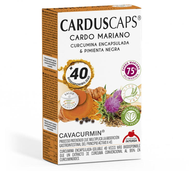 CARDUSCAPS®es un complemento ideal con un efecto sinérgico [CAVACURMIN®+ CARDO MARIANO] para depurar el organismo en profundidad y potenciar el bienestar.