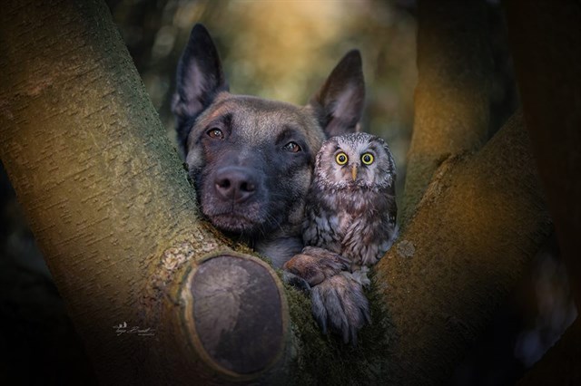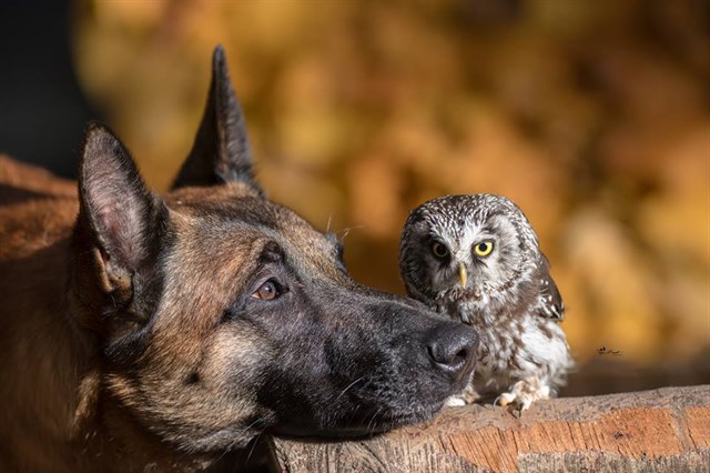 Imaginarse una posible amistad entre un perro y un animal con plumas como un búho es, tal vez, pedir demasiado. Normalmente, estas especies no interactúan mucho, pero las fotografías de la fotógrafa alemana, Tanja Brandt nos demuestran que la amistad, como tal, puede superar cualquier obstáculo por imposible que parezca.