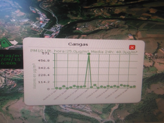 La Coordinadora Ecoloxista d’Asturies ha solicitado información a la Consejera de Infraestructuras Ordenación del Territorio y Medio Ambiente del Principado de las razones por las que el sábado se disparo la contaminación de partículas en la estación de Cangas del Narcea en el centro de Cangas donde se llego a alcanzar picos de mas de 575 µg/m3 de PM10.