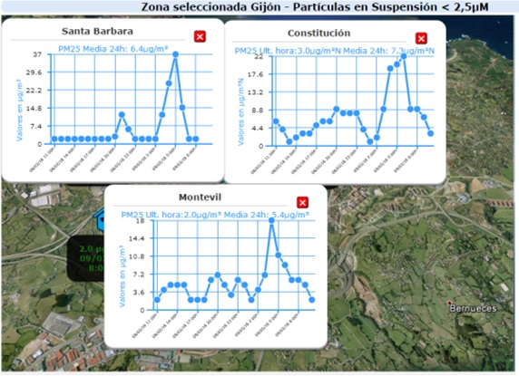 – La nueva estación de Roces ubicada en el polígono Santa Barbara llego a un pico de229µg/m3partiendo de 5µg/m3en Pm10.