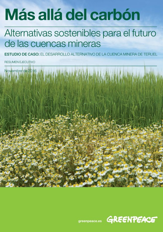 • Greenpeace presenta un informe, en el que ha participado el instituto Istas de CCOO, donde por primera vez analiza el fin del carbón y las alternativas de empleo con un caso de estudio concreto: la cuenca minera de Andorra (Teruel). Europa obliga a cerrar en 2018 la minería del carbón que haya recibido ayudas para el cierre y reconversión del sector, aunque España apenas ha abordado el problema. La quema de carbón para obtener electricidad es la principal causa de cambio climático y debe terminar para que la temperatura del planeta no suba más de 1,5 ºC.