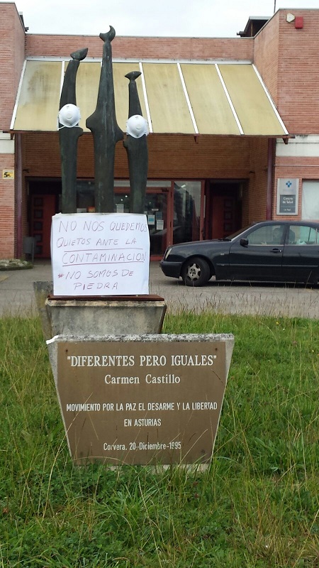 Por ello, este miércoles día 4, monumentos y espacios significativos de la Comarca en Avilés, Corvera, Castrillón y Gozón aparecen con una mascarilla bajo el lema “Ante la contaminación, no quedemos quietos”, porque si estos pudieran hablar seguro que reivindicarían una ciudad libre de contaminación y donde la preocupación por nuestra salud y bienestar fuera una prioridad.