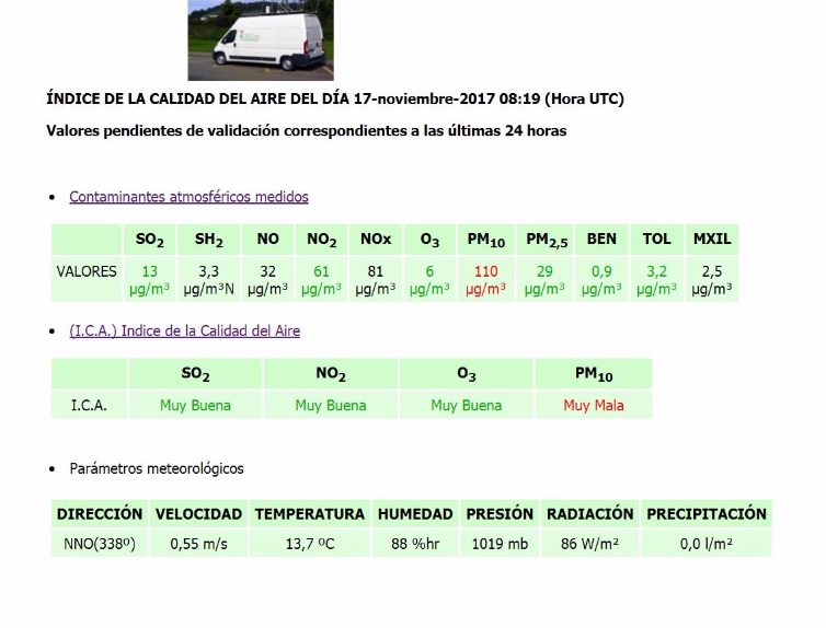 Estas estaciones no las va tener en cuenta el Principado para aplicar el protocolo de contaminación, estos vecinos de Gijón seguirán sufriendo la contaminación que no se tiene en cuenta a pesar de la gravedad de la situación, la estación móvil lleva 39 dias por encima de los 50 µg/m3 para las PM10 en los 3 meses que lleva, El medidor que tuvo durante un año (de octubre del 2016 a este) en el Lauredal el Principado en la sede Emulsa dio 89 superaciones de de los 50 µg/m3 PM10 y una media de 42 µg/m3 de PM10