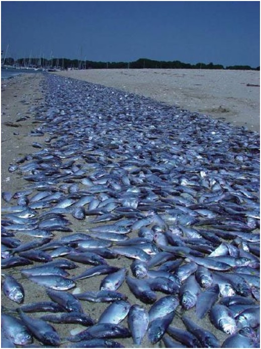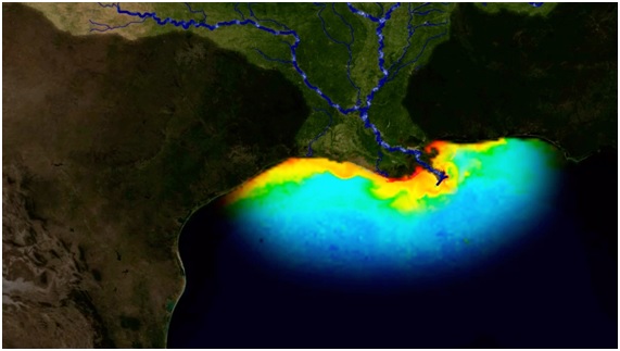 “La denominada “zona muerta” del norte del Golfo de México ha crecido hasta alcanzar casi los 17300 kilómetros cuadradas; contiene tan poco oxígeno disuelto, que impide casi la totalidad de vida marina.”