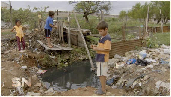 Cada vez que llueve, todo se inunda en Cateura, a ello se le suma que las casas son pequeñas, las familias grandes, padecen problemas sociales y carecen de de servicios públicos, caminos y desagües y todo ello al lado de un enorme basural con casi ningún control medioambiental.