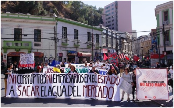 Las protestas por el agua no se limitan a la ciudad de Santiago. En el pasado mes de abril, más de 100 organizaciones de la sociedad civil se unieron en Valparaíso en la tercera marcha anual para la Recuperación de Agua y la Vida.