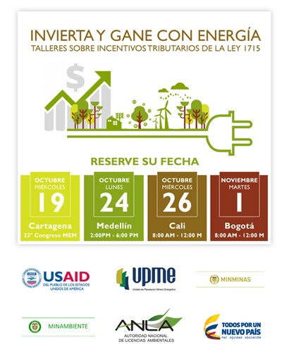El Ministerio de Minas y Energía a través de la Unidad de Planeación Minero Energética (UPME) y la Agencia de Estados Unidos para el Desarrollo Internacional (USAID) por medio del Programa de Energía Limpia para Colombia, unen esfuerzos para convocar e invitar a empresarios, inversionistas y ciudadanos en general a apostarle a la implementación de energías limpias