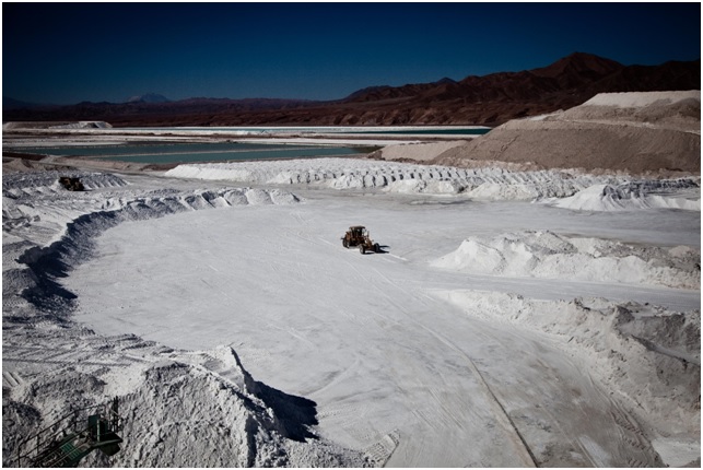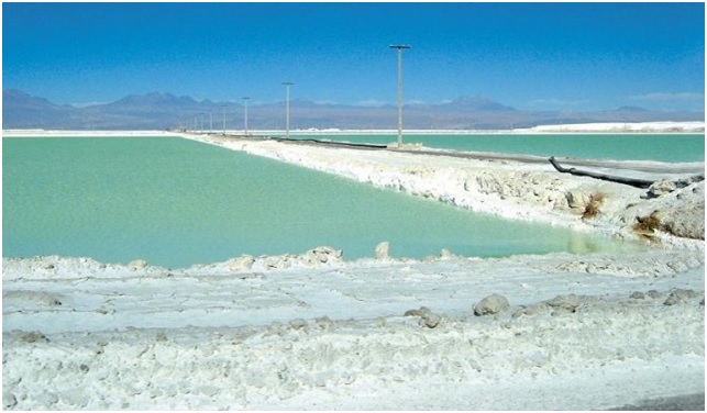 Las piscinas de salmuera y las áreas de procesamiento de la mina de litio de Soquimich (SQM) en la salina de Atacama, la segunda salina más grande del mundo, constituyen el mayor depósito de litio actualmente en producción, con más de una cuarta parte de las reservas conocidas mundialmente.