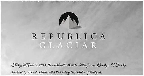 El 5 de marzo de 2014, Greenpeace declaró un nuevo país, al que denominó la «República Glaciar», que consta de 8.800 millas cuadradas de tierra glaciar chilena. Esta audaz declaración medioambiental fue el mejor intento de Greenpeace para proteger los glaciares chilenos de las prácticas impunes de la minería del oro corporativo, que contaminan y excavan el hielo a tasas insostenibles.