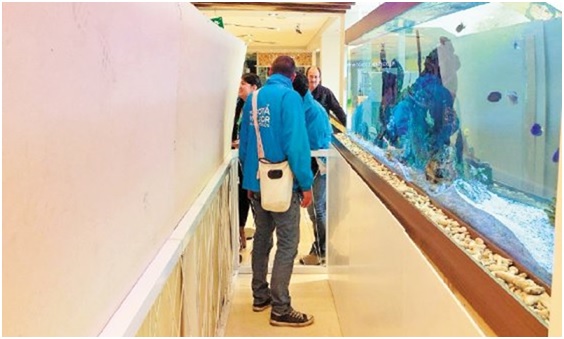 El gobierno de la ciudad determinó que el centro comercial no tenía permisos adecuados para importar o exhibir animales salvajes y exóticos, ya que los peces, según una declaración del gobierno de la ciudad, vinieron de sitios tan lejanos como Australia y las Islas Fiji.
