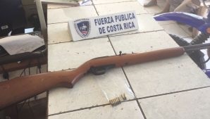 Oficiales de Parrita detuvieron a dos supuestos cazadores de apellidos Arias y Guerrero, y de 38 y 42 años respectivamente, quienes portaban un arma de fuego estilo carabina con ocho municiones.
