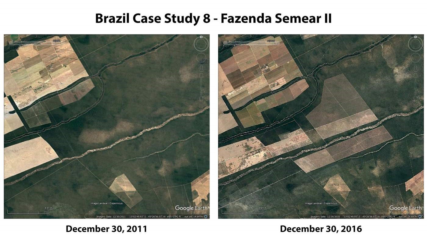 El grupo Mighty Earth sostiene que la evidencia obtenida de fotos hechas con aviones teledirigidos, mapeo de la cadena de suministros, imágenes satelitales e investigación de campo demuestran la existencia de un patrón sistemático en la mayoría de los incendios forestales de las zonas afectadas donde los agricultores locales hoy cultivan soja que les venden a Cargill y a Bunge.