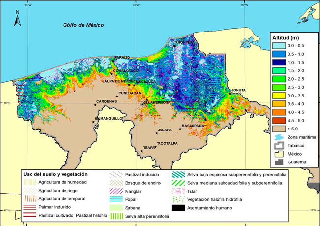 Hemos hecho modelaciones y Pantanos de Centla es la zona que más se vería afectada, porque la elevación del territorio es de hasta menos dos metros, indicando que será un sitio seguro de inundación.