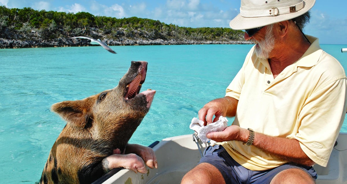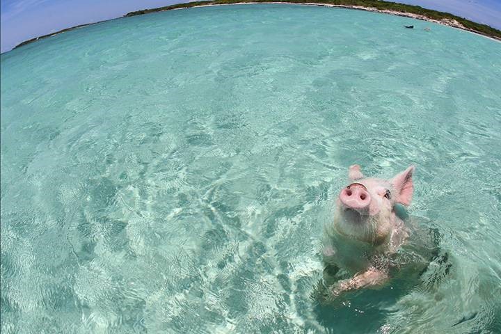 Big Cay ha sido catalogado a nivel mundial, como una especie de paraíso porcino. Los cerdos nadaban en las cristalinas aguas, bebían de la fuente de agua dulce de la isla y tenían un suministro constante de comida, traída por los turistas.