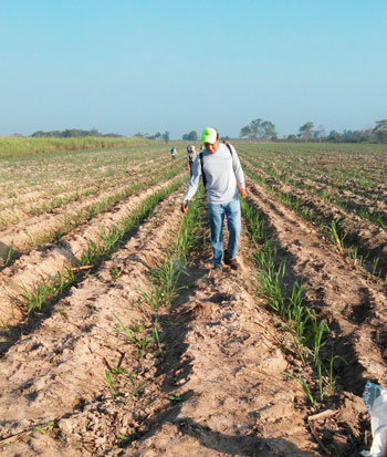 El productor indicó que para cubrir una hectárea plantada con caña de azúcar se requieren al menos 300 kilogramos de fertilizante; cada paquete contiene 50 kilogramos y tiene un precio aproximado de 350 pesos.