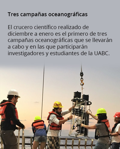Además del proyecto del doctor Loic Barbara, el estudiante de oceanología de la Facultad de Ciencias de la UABC, Edgar Cortés, tuvo la oportunidad de involucrarse en otros siete proyectos que convergieron en el crucero científico.
