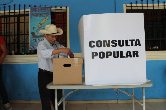 Organizada por la oficina del alcalde, junto con organizaciones sociales locales, la consulta, que contó con la participación de 52 por ciento de los habilitados, reveló que 98 por ciento están en contra de la minería en Cinquera.
