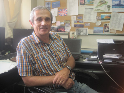 El vulcanólogo, como parte de dichos estudios, revisa el mapa geológico con el fin de elaborar un mapa de riesgos que ayude a las autoridades navales a mejorar la gestión de riesgo y la protección ambiental de la isla.