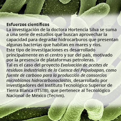 Aislar, identificar y caracterizar bacterias capaces de degradar hidrocarburos aromáticos policíclicos (HAP) presentes en el mar es el trabajo de investigación que desarrolla la doctora Hortencia Silva Jiménez, especialista del Instituto de Investigaciones Oceanológicas (IIO) de la Universidad Autónoma de Baja California (UABC).