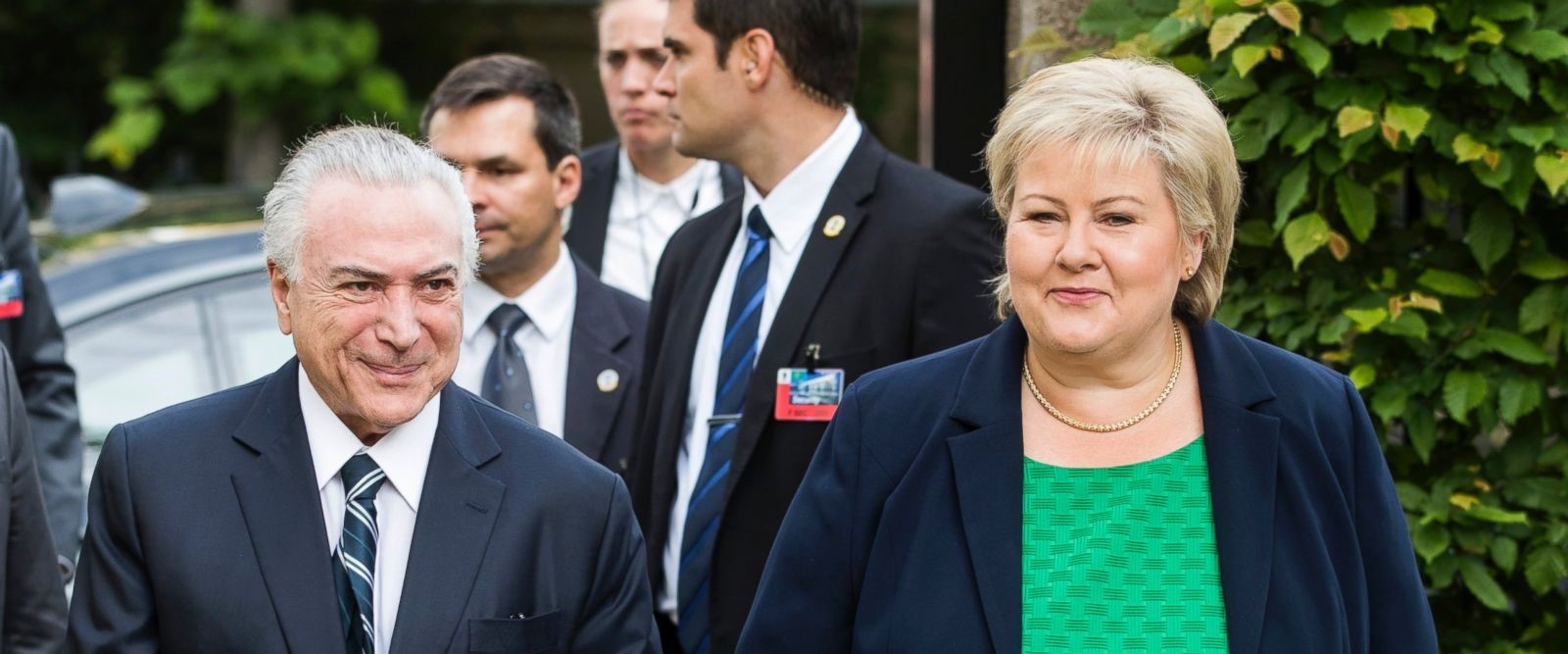 La primera ministra Erna Solberg se reunió con el presidente Temer en Oslo hace un par de semanas. Después de la reunión, en una conferencia de prensa, expresó su profunda preocupación por el aumento de la deforestación en la Amazonia, así como por la investigación sobre la corrupción, que recientemente salpicó al presidente Temer.