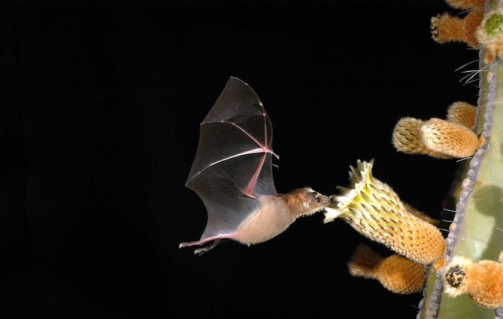 Son especies clave para mantener y expandir la biodiversidad al dispersar el polen a considerables distancias. A diferencia de los pájaros y las abejas que trabajan de día, los murciélagos toman el turno de la noche, cuando se desplazan emiten sonidos cuya vibración les indica dónde están sus flores favoritas, ya que prefieren las que poseen gran cantidad de néctar y no las que emanan olores o son coloridas o brillantes.