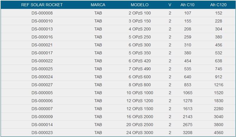 Capacidades entre 1.000Ah y 3.000Ah.