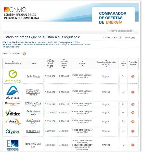 Como puede comprobarse en la imagen superior, la tarifa 3.0A de Gesternova lidera el ranking de precios del comparador de la CNMC superando incluso a las de compañías tradicionales. Por su parte, la tarifa 2.1A y su versión con discriminación horaria se han establecido también como las más económicas de su categoría. Ambas están concebidas para suministros entre 10 y 15 kW de potencia contratada y son comunes en oficinas, pequeños negocios, comunidades de vecinos y casas de gran tamaño.