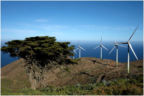 El Hierro es parte del archipiélago canario y es la isla que está ubicada más hacia el oeste adentrándose en el océano Atlántico, por lo que su situación resulta privilegiada a la hora de recibir diversas corrientes de aires, que hacen que los aerogeneradores se encuentren en movimiento casi constantemente.
