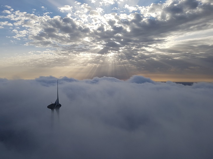 El tercer galardonado del concurso Eolo es Daniel López, técnico de mantenimiento de Enercon en Canarias, con su fotografía Como velero en mar de nubes.
