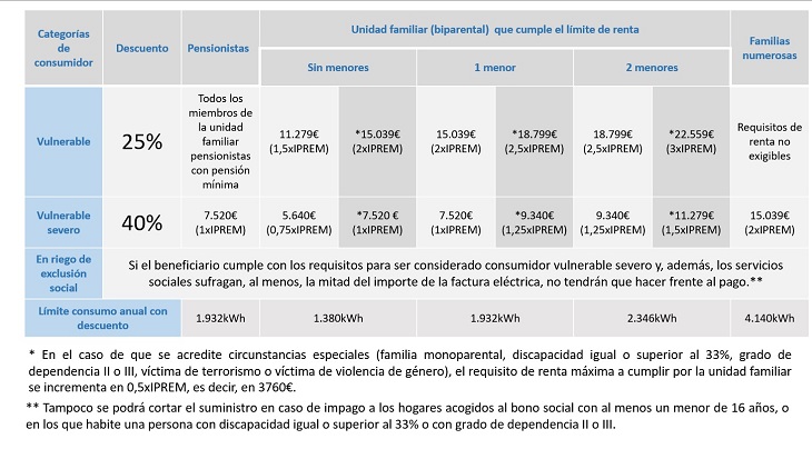 Por otro lado, y con el objeto de que más familias monoparentales puedan acceder al bono social, se determinan criterios de renta específicos para estos colectivos, más susceptibles al riesgo de pobreza energética, especialmente en el caso de las mujeres: el 85% de los hogares monoparentales tienen al frente a una madre. El umbral de renta máximo para que una familia monoparental pueda acceder al bono social se incrementará en 0,5 veces el IPREM respecto al de las familias biparentales.