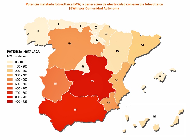 En comparación con el año 2017, cuando se instalaron 135 MW nuevos, la potencia fotovoltaica instalada en 2018 ha aumentado un 94%. Así, España ya alcanza los 5,1 GW de potencia fotovoltaica acumulada, situándose como el quinto país de Europa con más gigavatios.