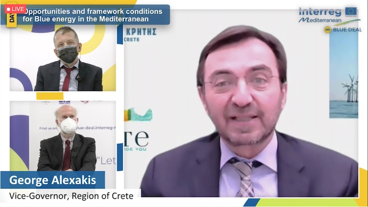 El primer día, se presentaron los objetivos de la blue energy a nivel regional y sus perspectivas a nivel europeo. George Alexakis, Vicegobernador de Asuntos Europeos e Internacionales de la Región de Creta, destacó que la Planificación Marítima Espacial es la clave para la ubicación y desarrollo de parques eólicos marinos en Grecia y especialmente en Creta. La estrategia de energías renovables puesta en marcha por la Comisión Europea, prevé un aumento de la energía eólica marina en Europa de 12 GW a 60 GW para 2030 y 300 GW en 2050 sea la mayor fuente de generación de electricidad en Europa.