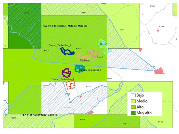 La implantación de los proyectos referidos generaría unos efectos sinérgicos y multiplicadores del impacto ambiental al interactuar con otras afecciones referidas a transformaciones de hábitat (como la transformación de regadíos existente en la zona) así como a otros proyectos fotovoltaicos que se planean en la zona y tendrían igualmente unos efectos irreversibles sobre la riqueza faunística presente, como son los proyectos fotovoltaicos Elawan Tordesillas I, Elawan Tordesillas II Y Elawan Tordesillas III.