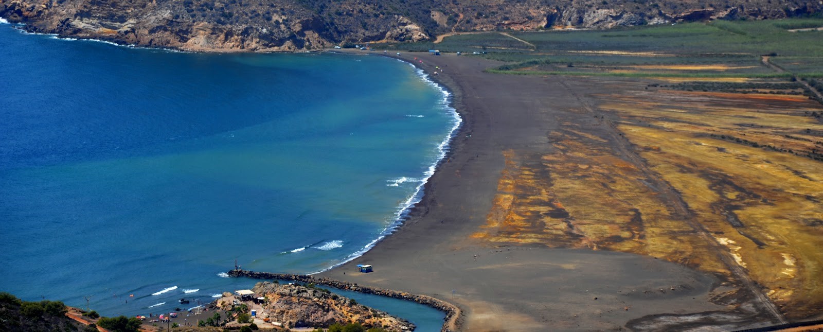 Esta playa de las costas de la Provincia de Almería soporta desde hace años, los vertidos que produce una cementera y está considerada una de las peores playas de toda Andalucía. A ello se le suma, la profunda erosión provocada por lo que Ecologistas en Acción llama una “paseo marítimo encubierto” y que oficialmente se denomina Senda Litoral.