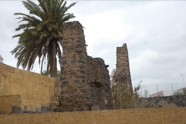 Estamos, pues, ante los restos de un acueducto del que se conservan sólo los pilares de piedra, habiendo desaparecido el canal y otros elementos sustentantes de madera. Pero hay más; también se conservan unas paredes de piedras situadas entre los pilares y lo que parece ser un cubo de molino, elementos todos que debían formar parte del mismo conjunto del ingenio azucarero aquí establecido en el siglo XVI. Además, no hay que descartar la presencia de más restos enterrados en el subsuelo inmediato, en las actuales explanadas de aparcamientos.