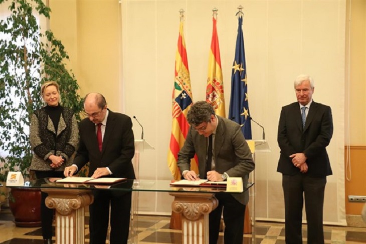 Ha señalado que en el encuentro que ha mantenido con el ministro antes de la firma también han estado presentes la consejera de Economía, Marta Gastón, y el delegado del Gobierno en Aragón, Gustavo Alcalde.