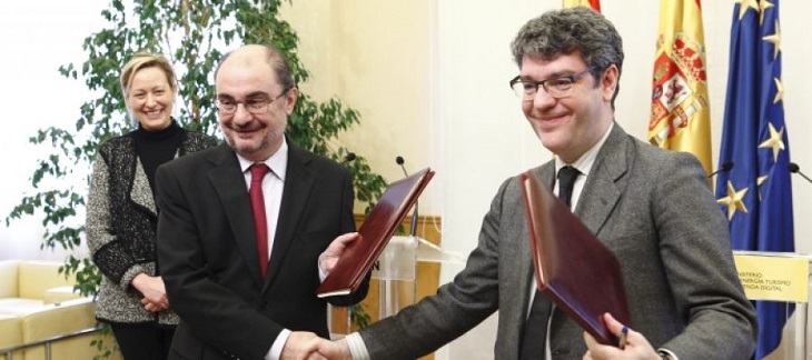 El ministro de Energía, Turismo y Agenda Digital, Álvaro Nadal, y el presidente de la Comunidad aragonesa, Javier Lambán, han firmado un convenio dotado con 250 millones de euros para infraestructuras y zonas degradas por la minería.
