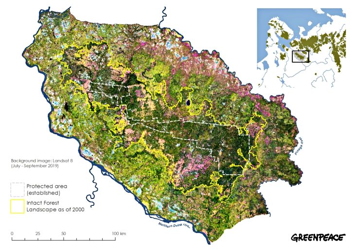 Hasta hace pocos años, la parte central del interfluvio entre los ríos Dvina y Pinega se había mantenido en estado salvaje debido al acuerdo firmado hace un año incluía una moratoria a la explotación forestal y la construcción de caminos forestales precisamente en el corazón de esta área.