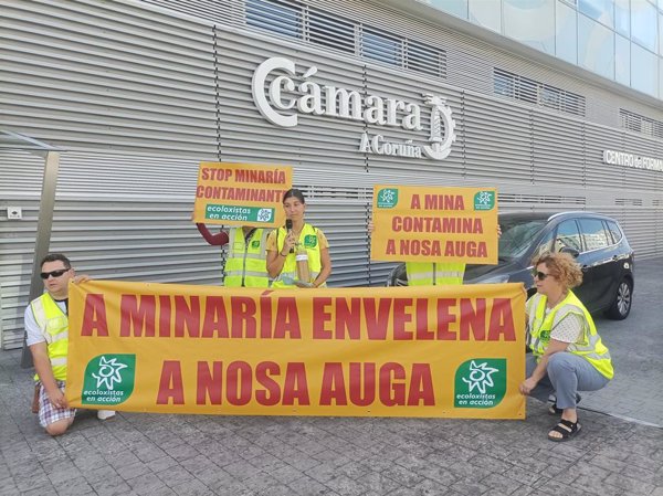 Activistas de la organización ecologista entregaron el pasado mes de septiembre, en la sede del organismo minero, varias muestras de agua contaminada procedente de las minas de San Finx y Touro. La Cámara Minera les atribuye, por esto, un inexistente delito de coacciones y asalto violento.