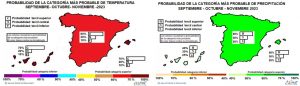 Según los modelos de predicción estacional, hay una alta probabilidad (superior al 60 % en la Península y al 70 % en los archipiélagos) de que el otoño meteorológico sea más cálido de lo normal.