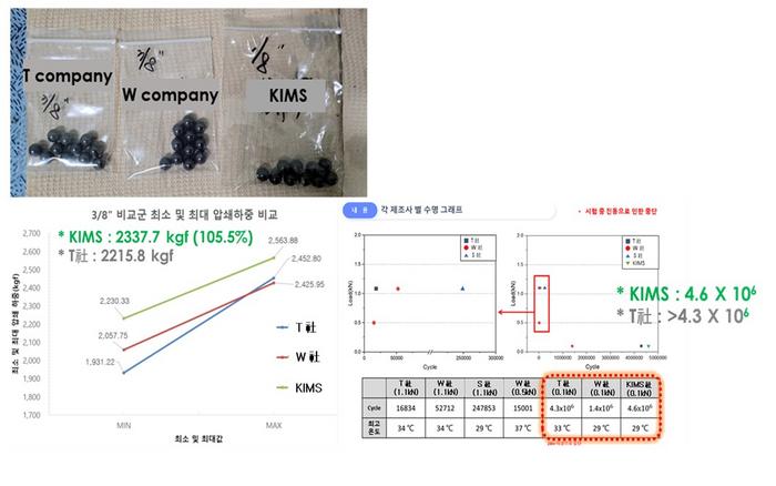 Al evaluar las bolas comerciales de T Company y las fabricadas por el equipo de investigación en las mismas condiciones, la resistencia al aplastamiento, que es un indicador de rendimiento de la capacidad de carga, demostró una ventaja comparativa del 103% al 105%. La vida útil de la fatiga por rodadura, que es un indicador de rendimiento para soportar la rotación a alta velocidad durante un período prolongado, mostró valores equivalentes.