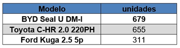 Cuadro 5. Top 3 turismos híbridos enchufables más vendidos